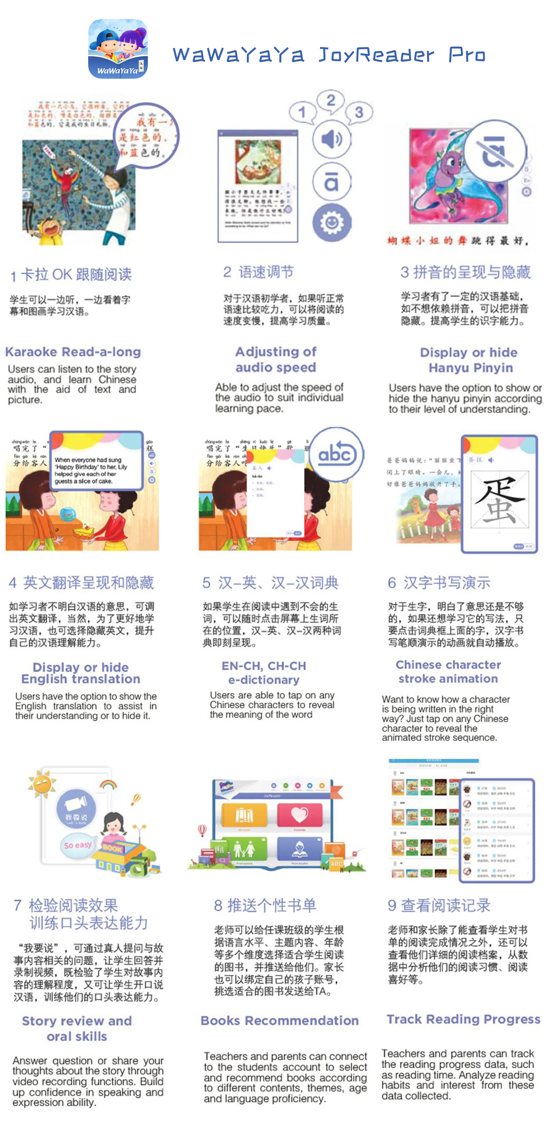 * WaWaYaYa JoyReader Pro应用程序由创而新开发,可在手机和平板电脑上使用。若有任何对此应用程序的疑问,请电邮至helpdesk@hansvision.com。