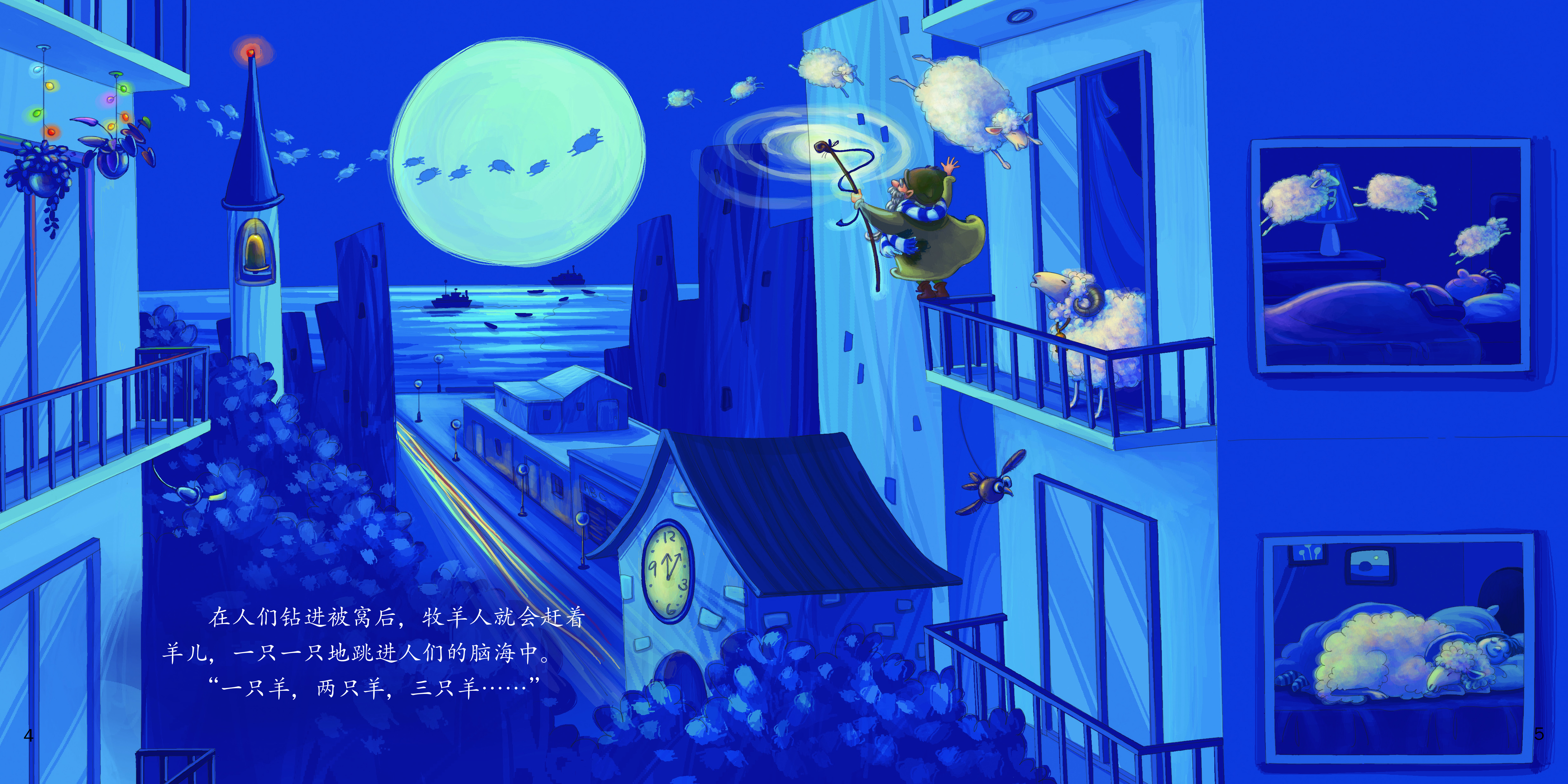 牧羊人每天赶着羊儿跳进人们的脑海中,让人们能够舒服地睡着。可是这一天,牧羊人实在是太困了……