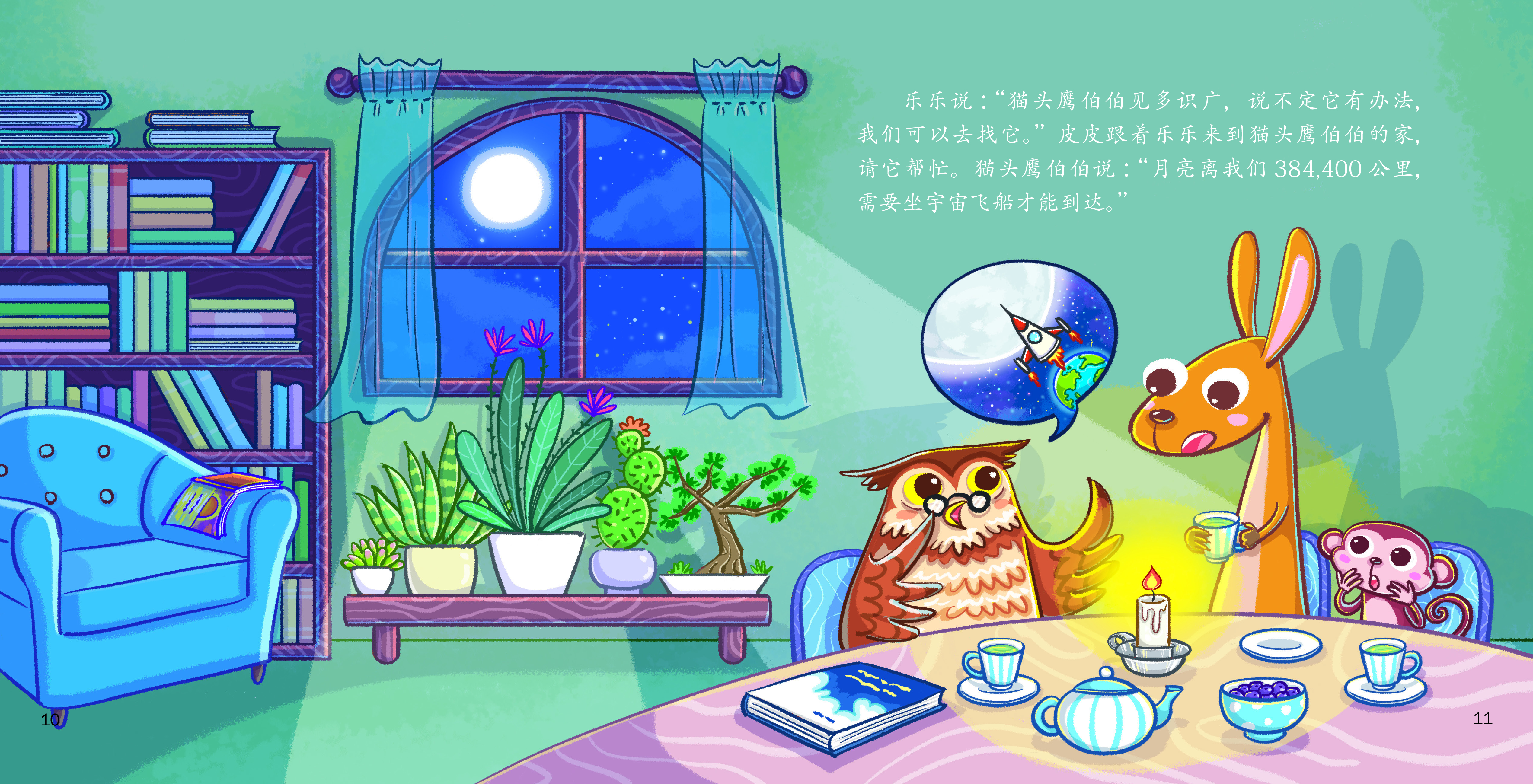 皮皮想跳到月亮上去。可是,无论它跳得多高,都没办法碰到月亮。皮皮最后能成功吗?