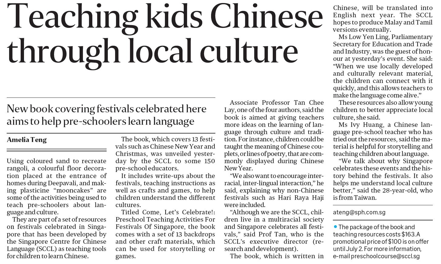 《海峡时报》2016年6月19日: Teaching kids Chinese through local culture