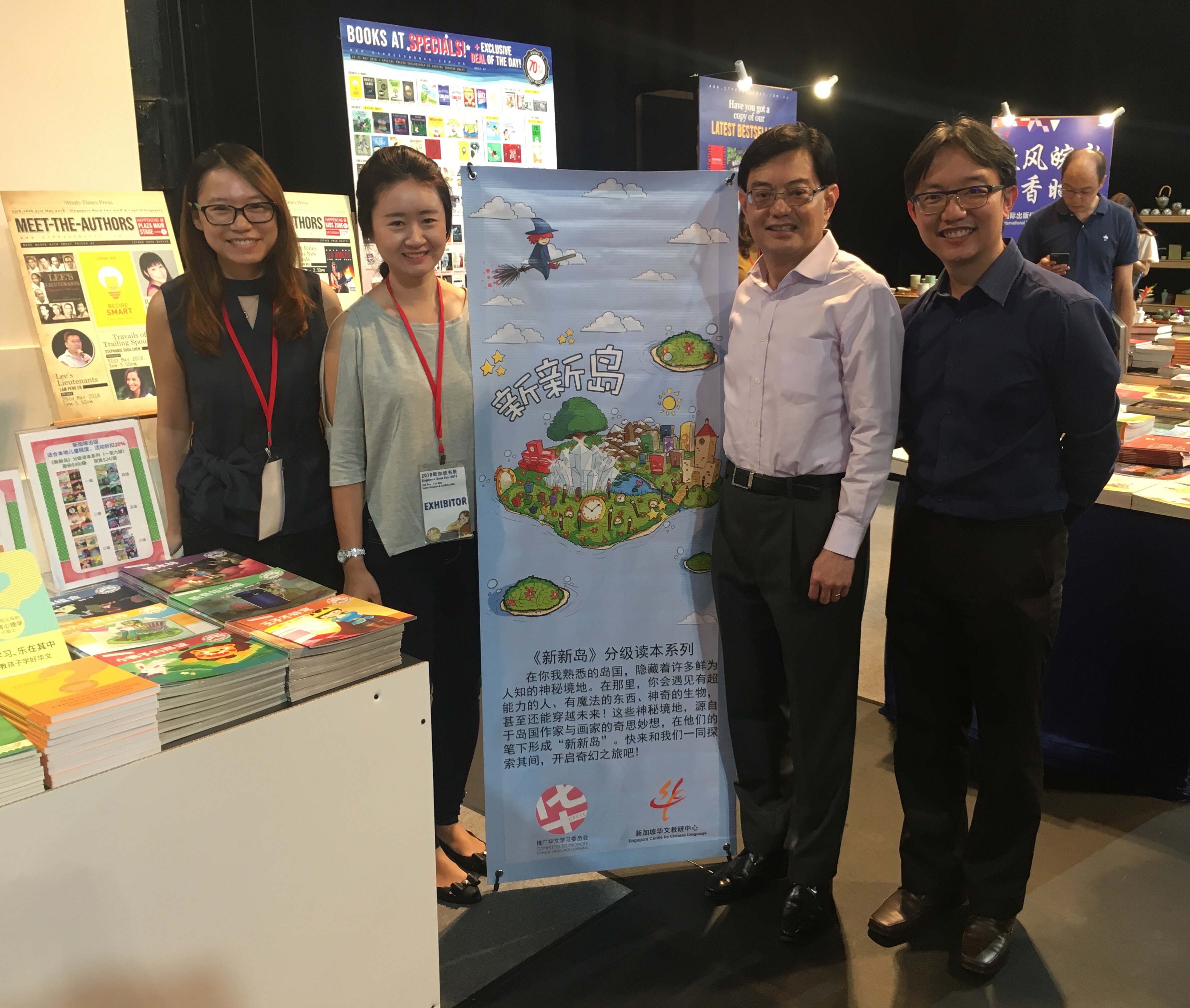 财政部长王瑞杰(右二)莅临中心设于新加坡书展的展位