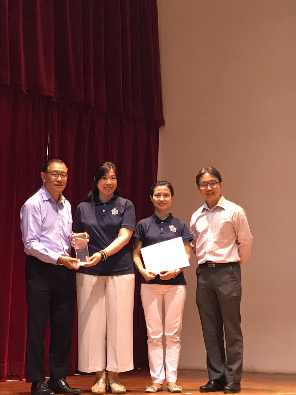 同一天,中心也举办了"2018新加坡幼儿华语文教具比赛-日常生活材料篇"颁奖典礼。符传丰博士(教研中心院长)和陈志锐博士(教研中心院长,研究与发展)为得奖教师颁发奖品。
