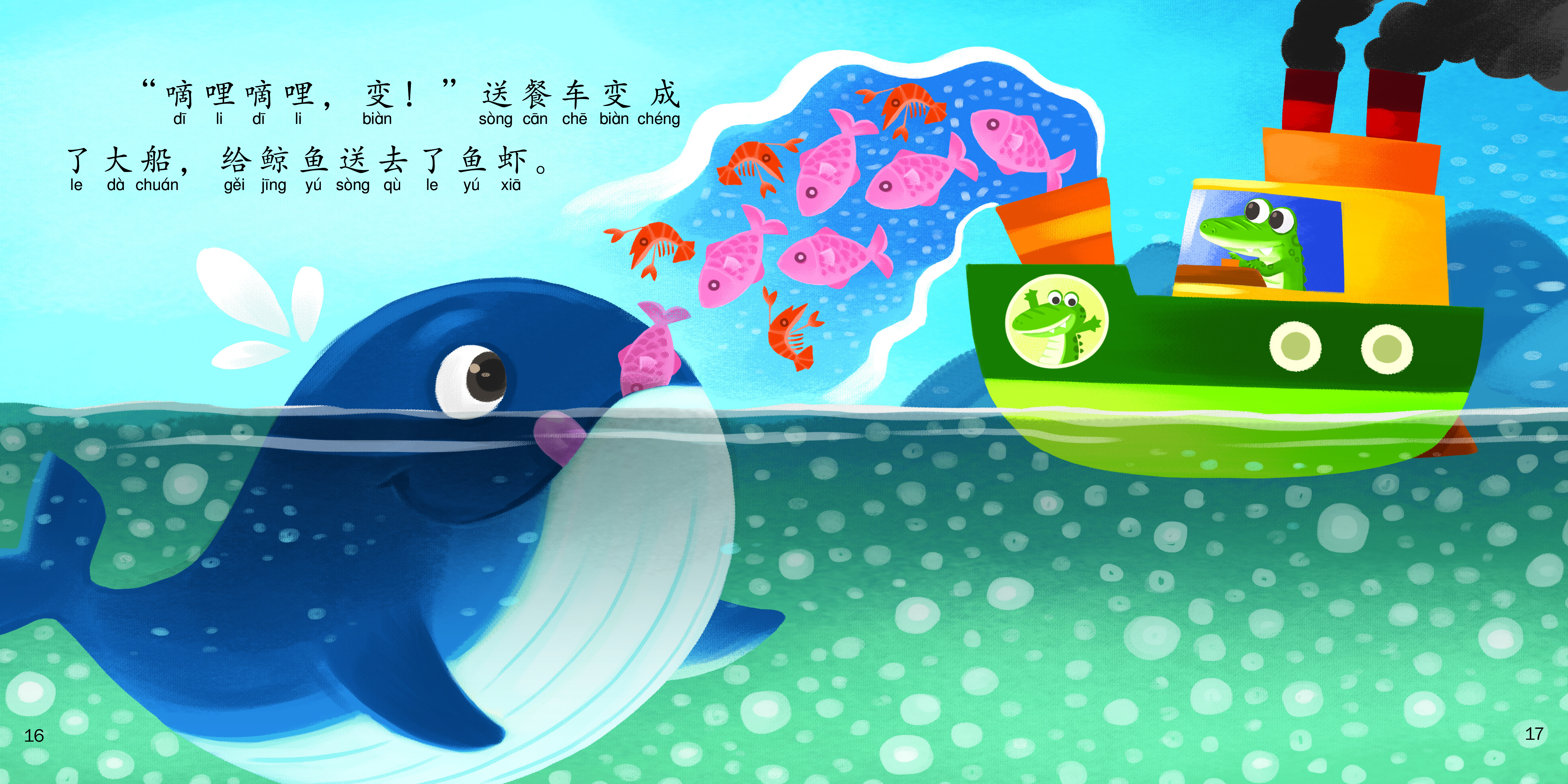 Little Crocodile has a magical food delivery vehicle that can turn into various means of transportation for it to deliver food to other little animals. "Ding Dong!" Who has come to make order this time?