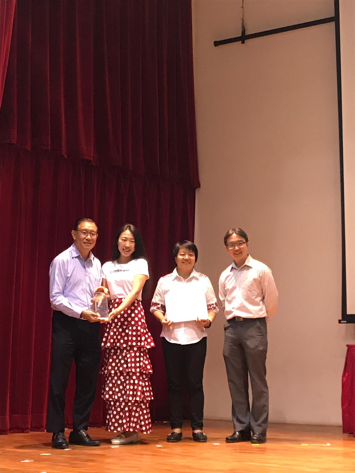 同一天,中心也举办了"2018新加坡幼儿华语文教具比赛-日常生活材料篇"颁奖典礼。符传丰博士(教研中心院长)和陈志锐博士(教研中心院长,研究与发展)为得奖教师颁发奖品。